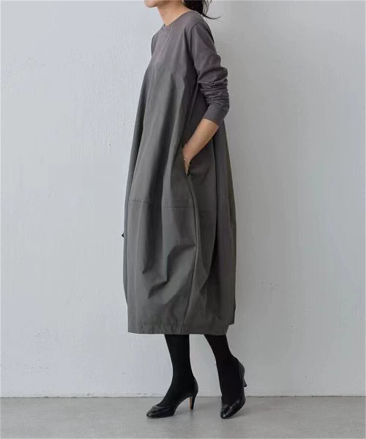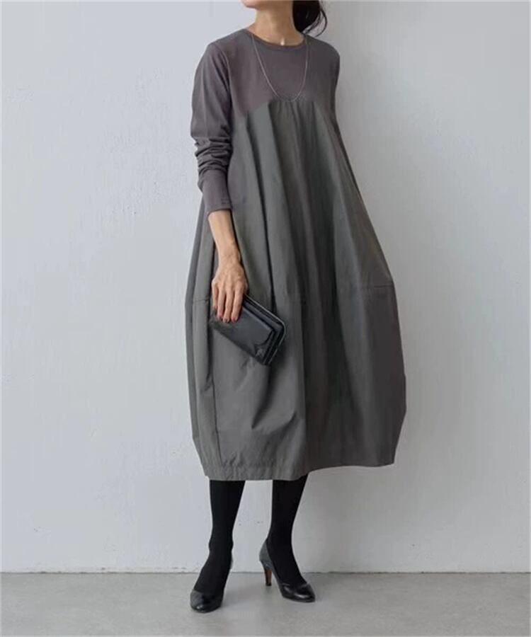 ラウンドネック 肌にやさしい 上品映え ワンピース スリム カジュアル 縫付
